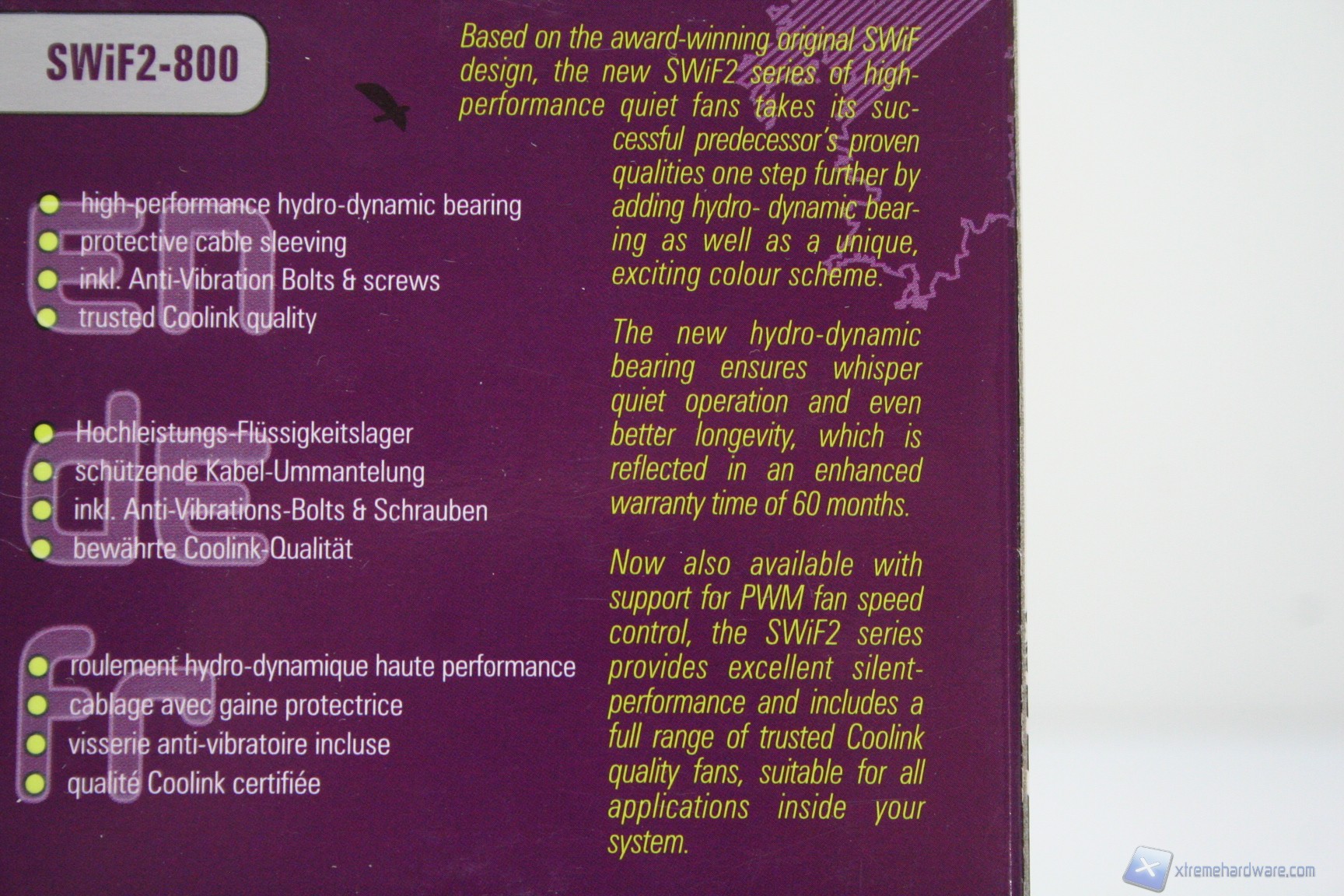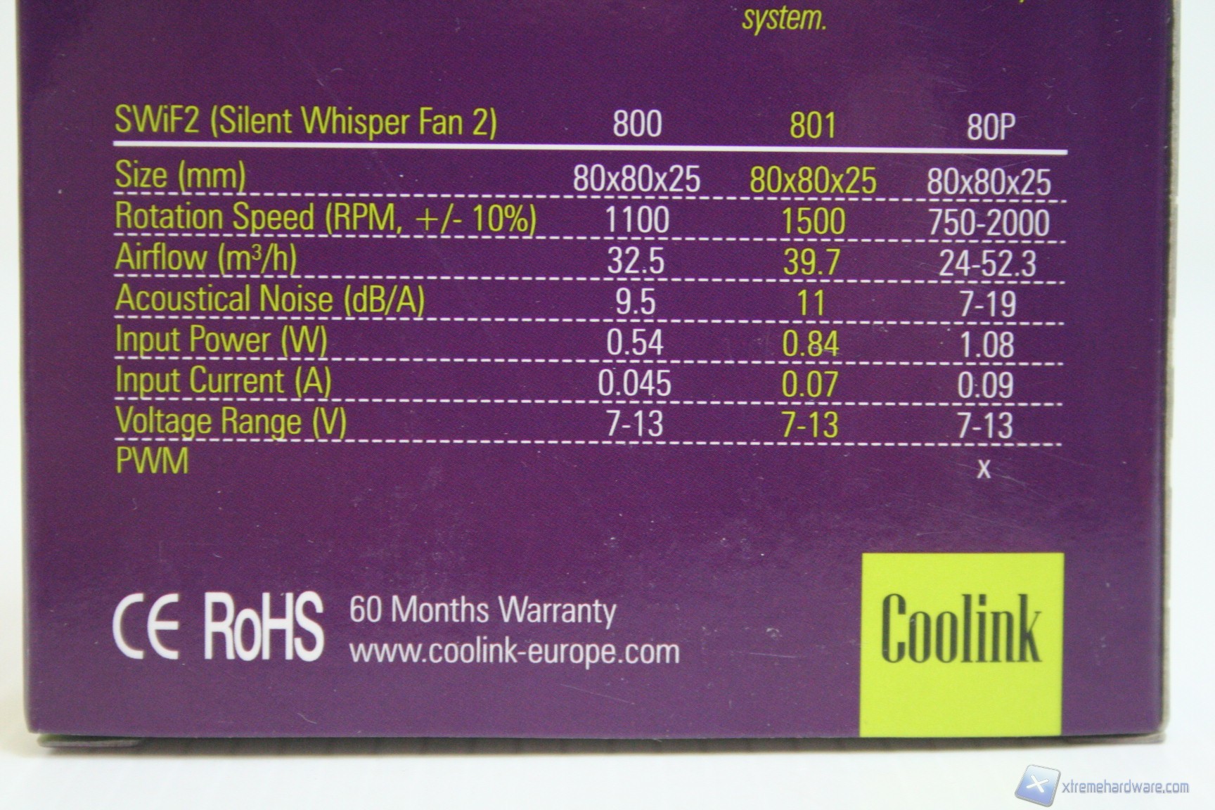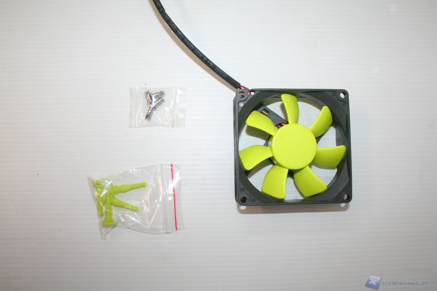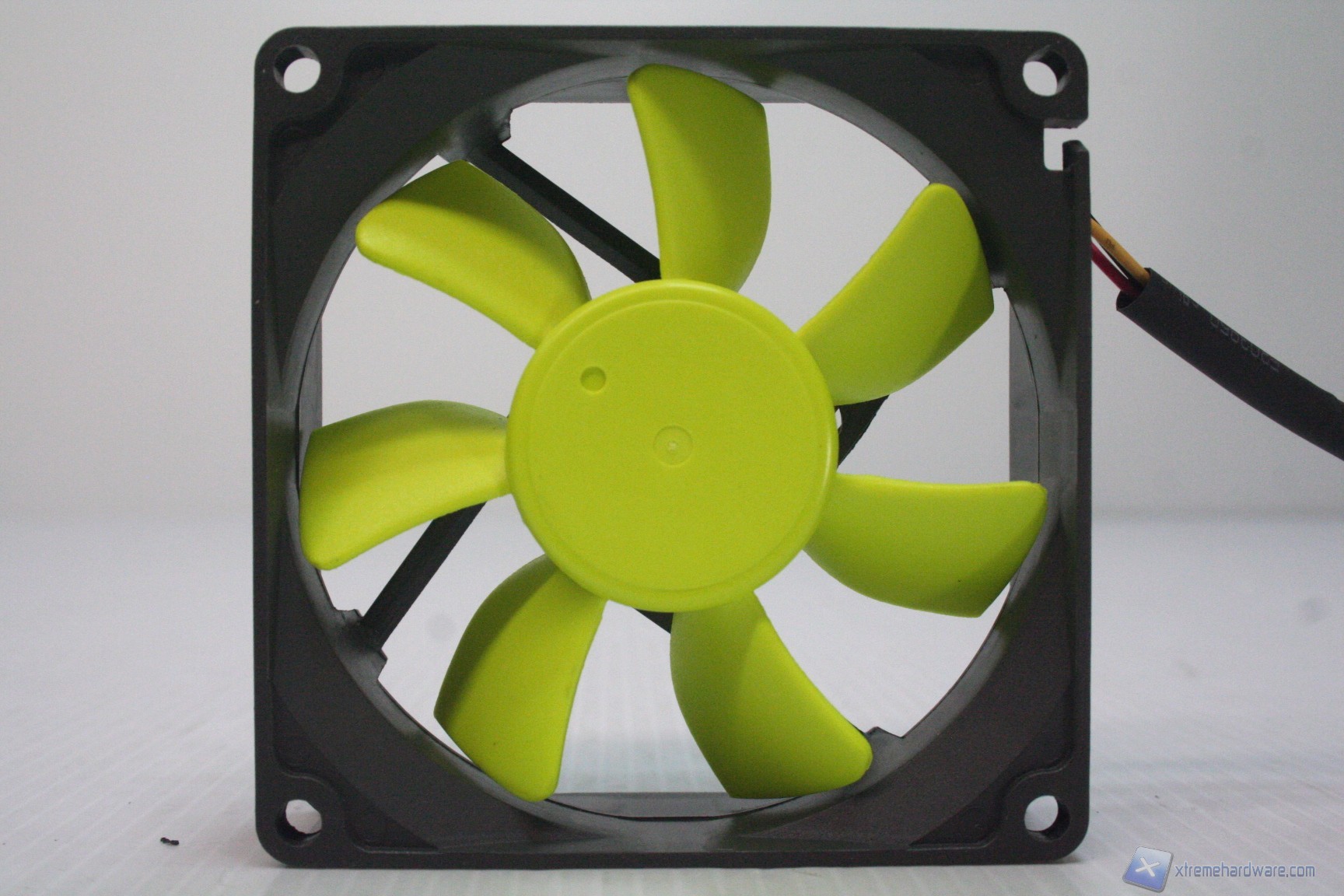 La struttura è standard, eccetto la colorazione verde limone scuro delle pale, che sono specifiche per la ventilazione di case e quindi non molto appropriate per dissipatori (anche se per questa tipologia è irrilevante). Il motore è di grandi dimensioni e la funzionalità PWM è specifica solo per il modello 80P. Non è noto l’MTBF, se non che è riportata la presenza dell’Hydro-dynamic bearing. Nella confezione del modello 80P è inserito un connettore che permette la regolazione appaiata delle ventole, un “PWM split cable”, simile quindi alle soluzioni Arctic Cooling. Il numero delle pale, come il CFM e la pressione statica sono standard. Il telaio non presenta particolarità degne di nota e le pale non sono removibli. Il target di utenza è specifico per tutti coloro che necessitano di ventole generiche per la sostituzione, o il potenziamento, di quelle in un cabinet o dissipatore low profile. La rumorosità non sarà una caratteristica di questi modelli, anche se ovviamente a 2000RPM il modello 80P comincia a farsi sentire.