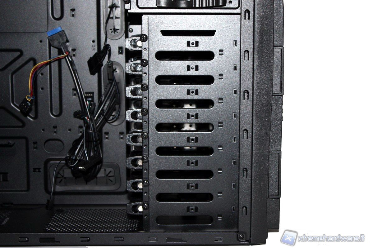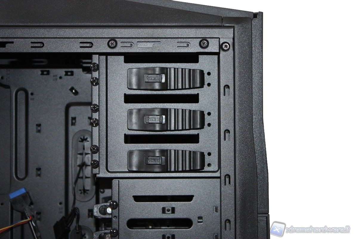 I tre bay da 5.25" presentano un comodo aggancio tool-free che consente il fissaggio delle periferiche eventualmente installate