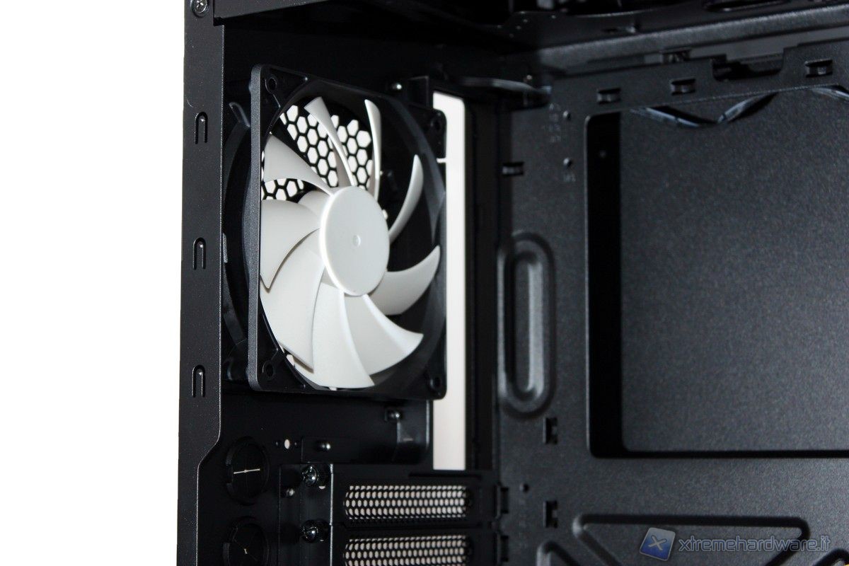 Nella parte posteriore, come già detto prima, troviamo i 7 slot PCI con viti di tipo thumbscrew, sovrastati dalla solita ventola da 120mm e 1200RPM installata in estrazione.